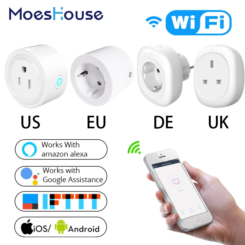 Умная розетка, Wi-Fi, с дистанционным управлением, работает с Amazon Alexa Google Home