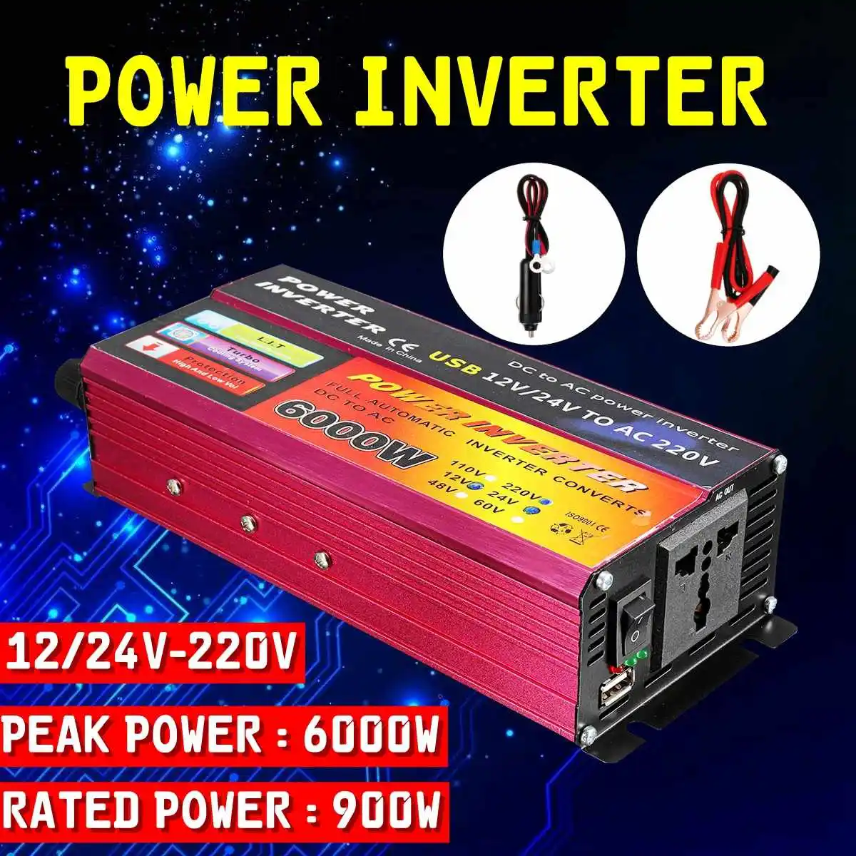 Солнечный инвертор постоянного тока в 12/24V дo AC 110/220V пик Мощность 6000W инвертор Напряжение Трансформатор конвертер для автомобиля, грузовика, ...