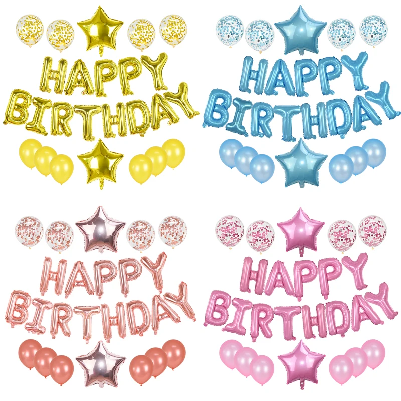 1 комплект, золотой, синий, розовый, золотой, розовый, серебряный, фольга, с днем рождения, фольга, с надписью, воздушный шар, латексный, с буквами, воздушный шар, набор, детское украшение для душа