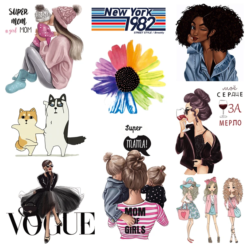Модные нашивки для одежды для девочек, сделай сам, термопереводные наклейки для мамы и ребенка, термонаклейки для женщин, детская одежда
