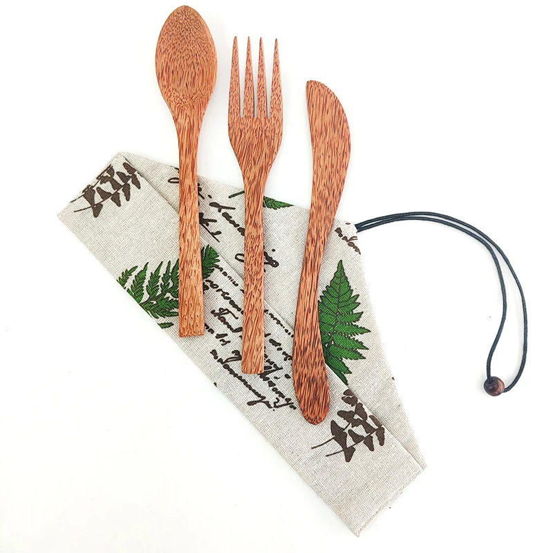 3 шт. набор столовых приборов из кокосового ореха, натуральный экологичный нож, ложка, вилка, ручная работа, деревянная посуда, набор, портативный органический кокосовый орех