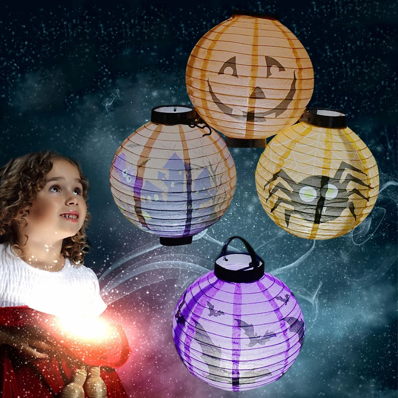 Хэллоуин Светодиодный фонарь тыквы ужас светящийся паук череп летучая мышь светодиодный светильник Хэллоуин домашние вечерние подвесные люстры украшения
