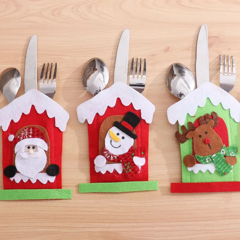 Рождественская и новогодняя карманная вилка, нож, столовые приборы, держатель для сумки, домашние вечерние украшения для стола, столовая посуда 63009