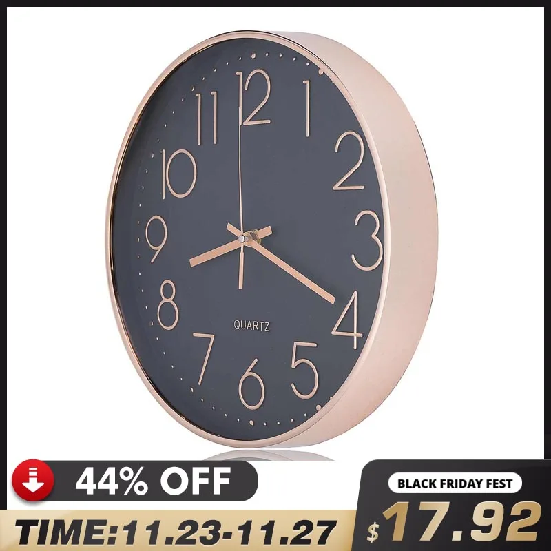 Бесшумные настенные часы цвета розового золота и черного цвета для спальни, гостиной, кварцевые настенные часы простого дизайна без батареи, Декор для дома