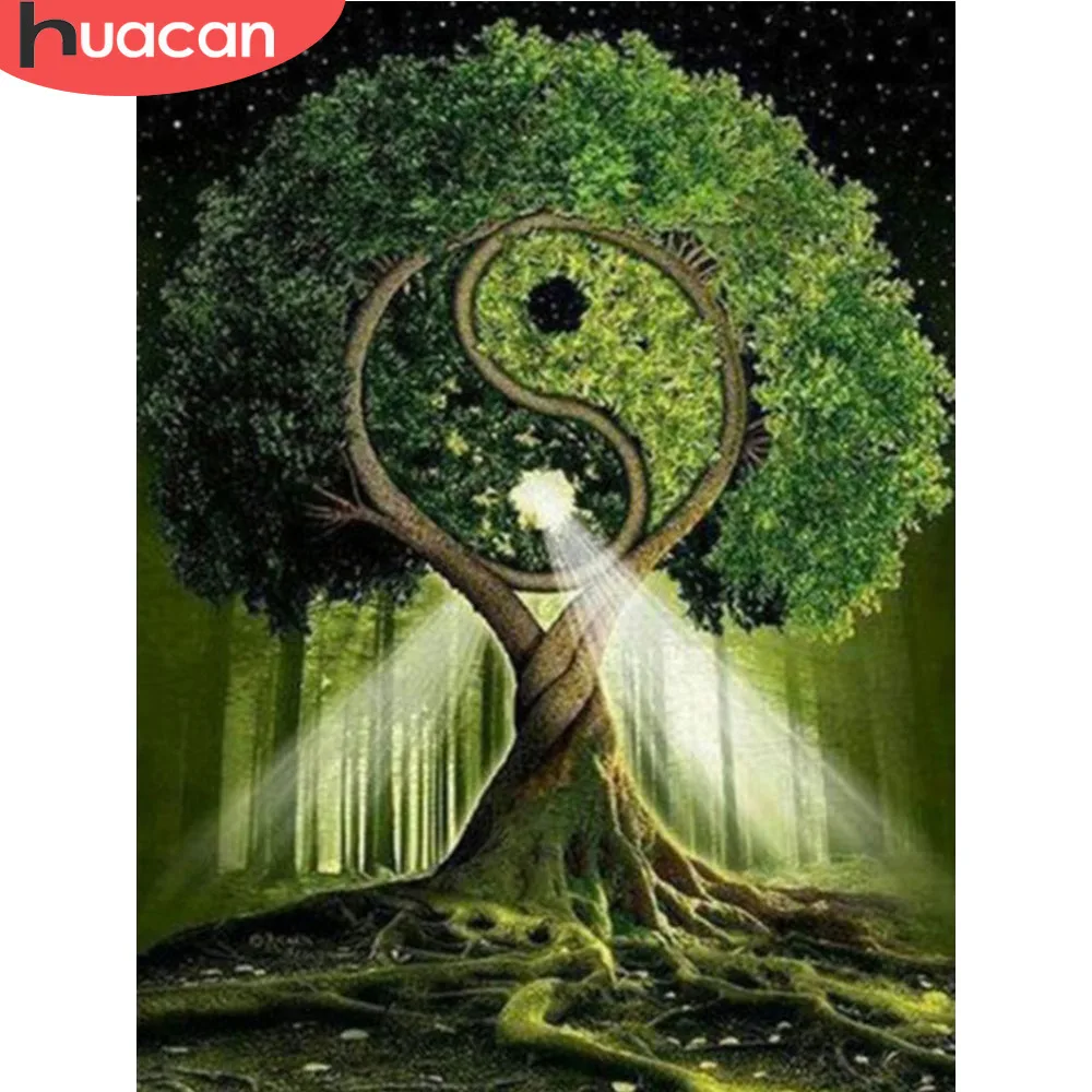 HUACAN полная дрель квадратный 5D DIY Алмазная картина Бриллиантовая вышивка с изображением дерева Пейзаж Тай Чи картина Стразы Декор для дома