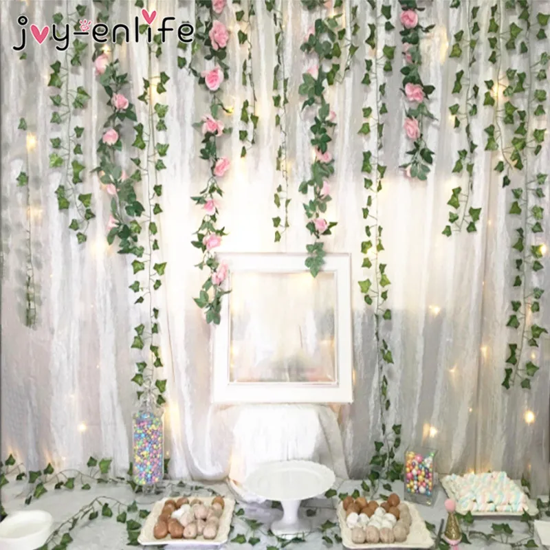 Шелковые искусственные розы для украшения свадьбы, Ротанговые светодиодные гирлянды для дома, стены, сада, свадьбы, вечеринки, подвесные ги...