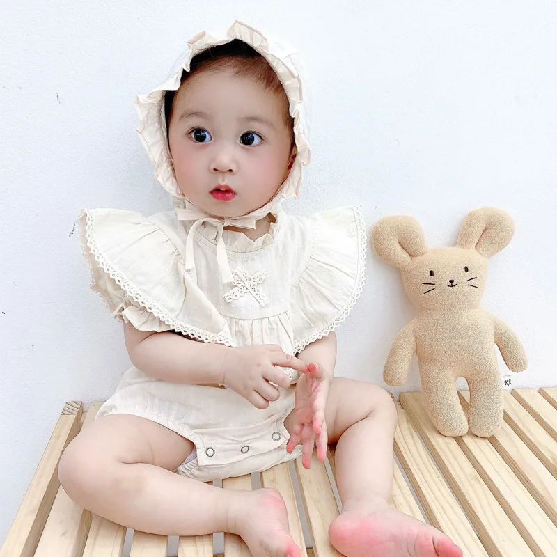 Новинка 2021 года; Сезон лето; Модное боди с цветочным узором для новорожденных девочек; Однотонное боди с короткими рукавами и шапкой для маленьких девочек