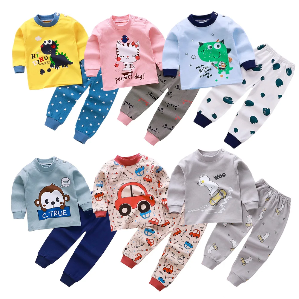 Комплект одежды для мальчиков и девочек, Осень-зима, футболка с принтом динозавра из мультфильма, одежда для маленьких мальчиков с длинными ...
