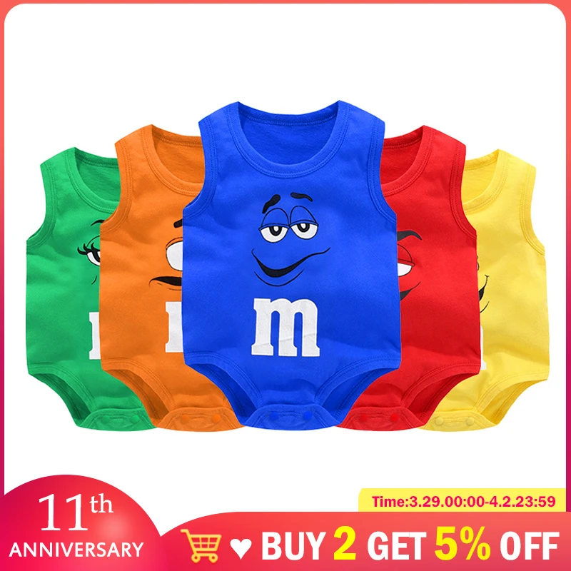Коллекция 2021 года, летний хлопковый жилет для малышей, одежда для мальчиков, 5 цветов, боди с героями мультфильмов без рукавов, Одежда для новорожденных Одежда для альпинизма для девочек возрастом от 0 до 24 месяцев