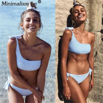 Сексуальная полосатая повязка бикини для женщин на одно плечо купальный костюм Купальники с низкой талией купальник Топ женский летний пля...