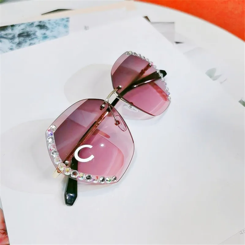 Новинка 2021, модные солнцезащитные очки с бриллиантовой отделкой, женские очки без оправы с режущими линзами, популярные солнцезащитные очки с защитой от ультрафиолета