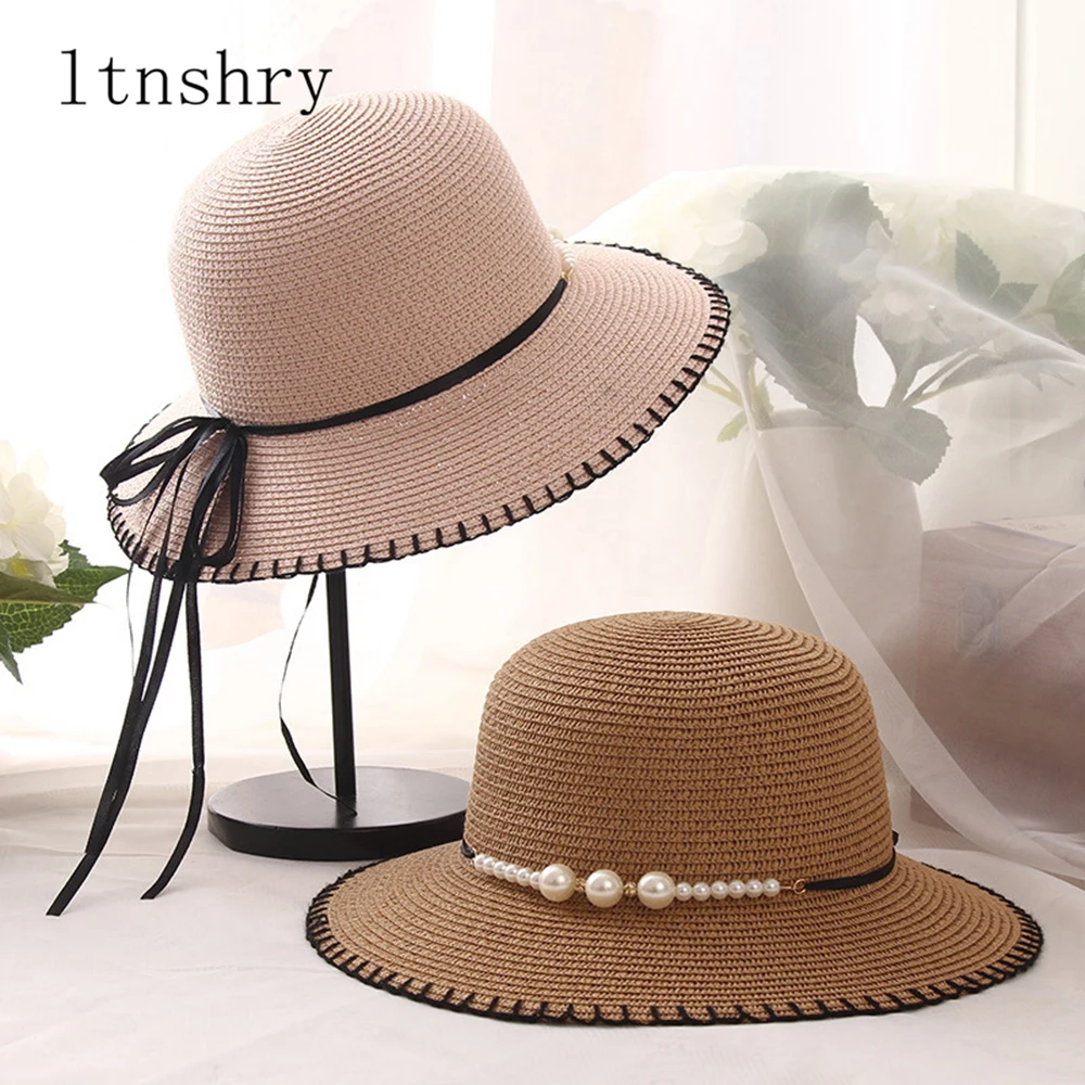 Летняя Новинка 2019, модная летняя Женская Складная пляжная Солнцезащитная шляпа с широкими полями и элегантным жемчугом для девушек
