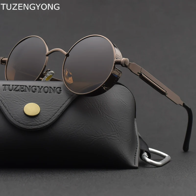 Винтажные поляризационные солнцезащитные очки, для мужчин и женщин, круглые очки в металлической оправе в стиле стимпанк, дизайнерские очк...