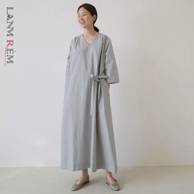 LANMREM женское платье, лето 2020, мода, v-образный вырез, расклешенные рукава, однотонный пуловер, свободный, большой размер, WL92104XL