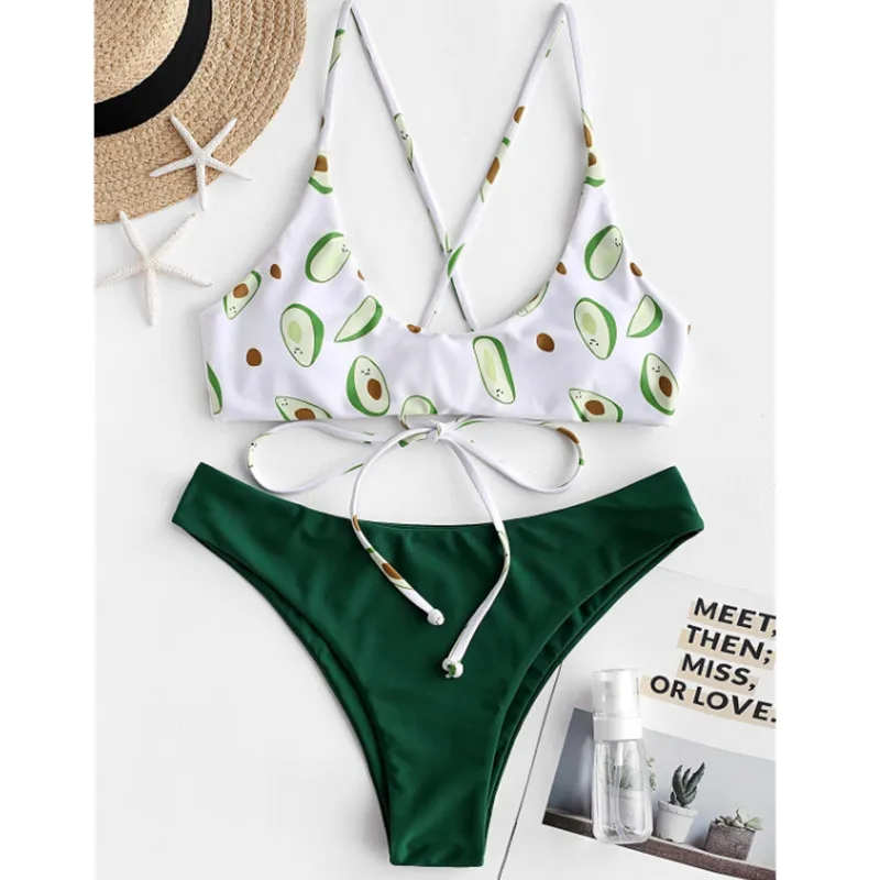 Женский комплект бикини с бюстгальтером с подкладкой, купальник с пуш-авокадо, бандажный треугольный купальник