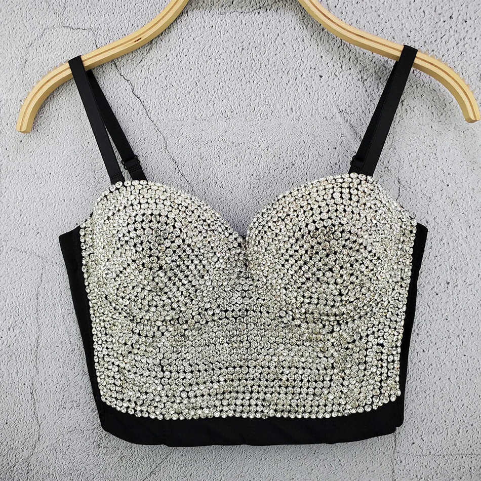 Женский мини-топ без рукавов Adyce, клубный вечерний шикарный укороченный топ на тонких бретелях с роскошными бриллиантами, вечерние шикарный...