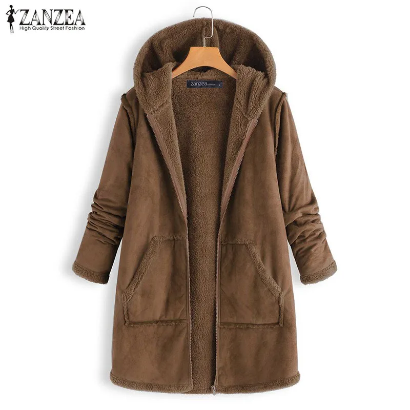 2021 ZANZEA повседневное одноцветное пальто для женщин зимние куртки с хлопковым верхом, меховой кардиган с подкладкой, женская верхняя одежда, джинсовая куртка с длинным рукавом на молнии Верхняя одежда размера плюс