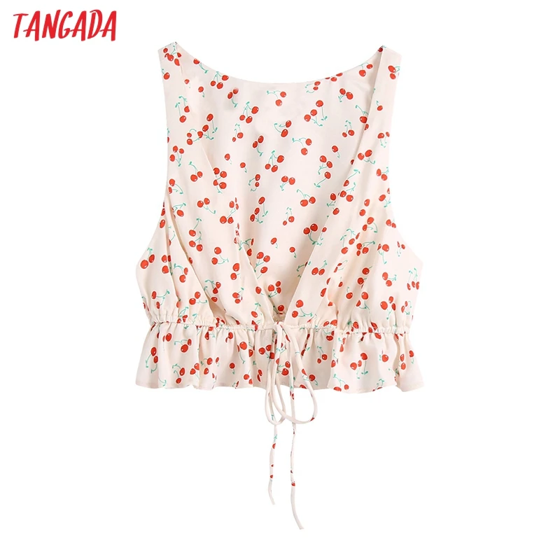 Tangada Для женщин в стиле ретро с цветочным принтом, без рукавов, рубашка пикантные пляжные 2021 шикарный женский детский топ-футболка с коротким рукавом с изображением BE680