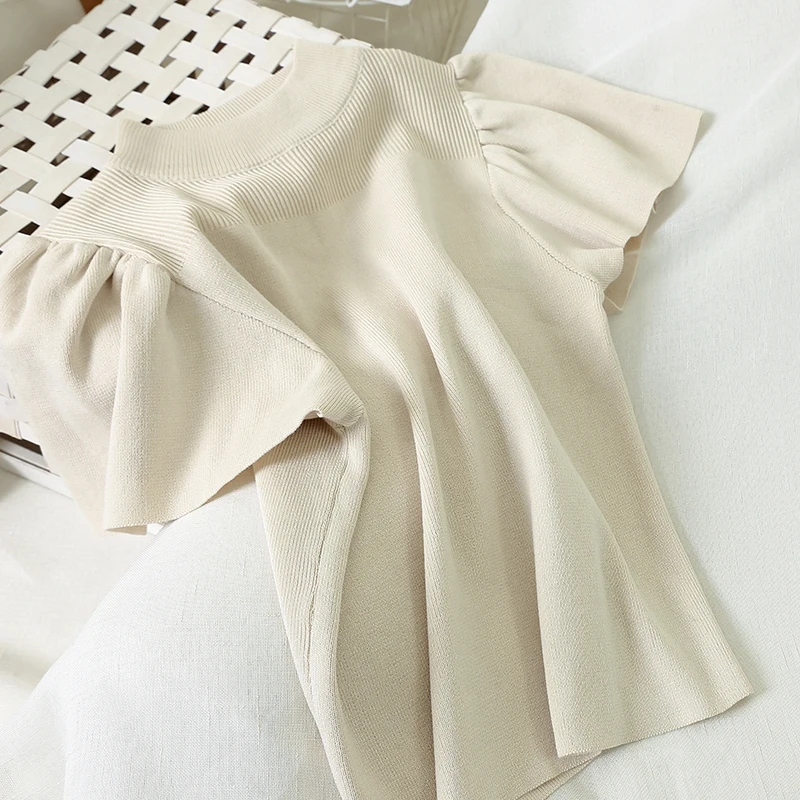 [EAM] Женская трикотажная короткая блузка цвета хаки, новая свободная рубашка с отворотом и длинным рукавом-фонариком, весна-осень 2020 1DA83404