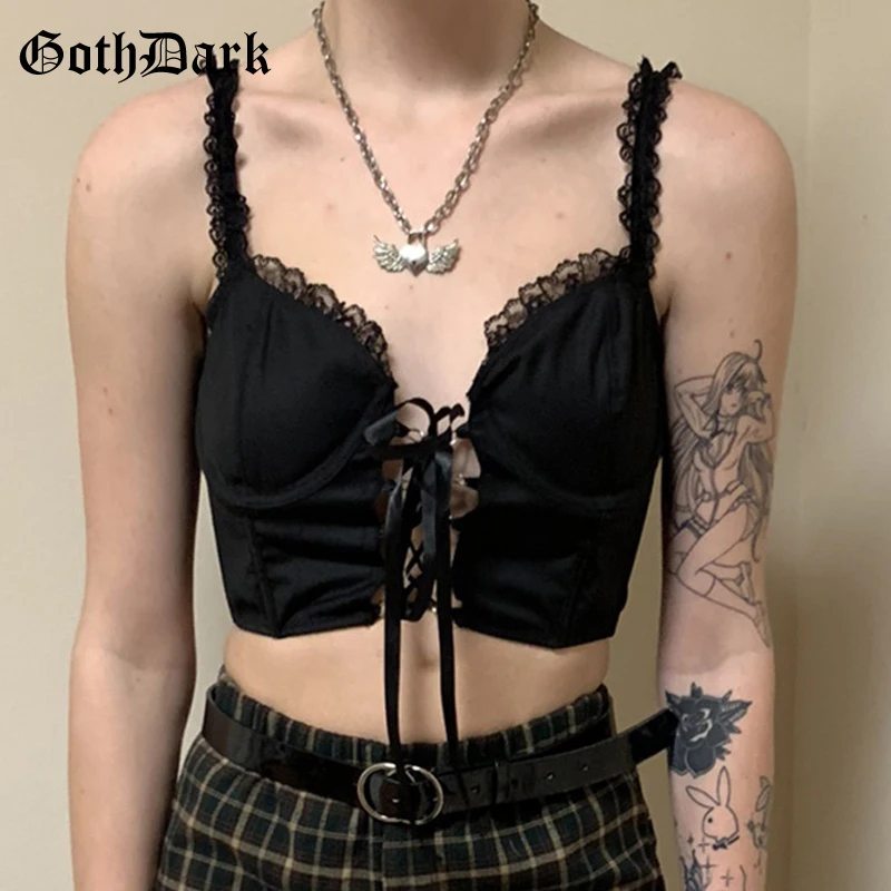 Goth Dark, винтажный, готический, сексуальный, Camis, черный, Mall, Goth, панк, кружево, пэчворк, для женщин, эмо, короткий топ с открытой спиной, Альтернат...