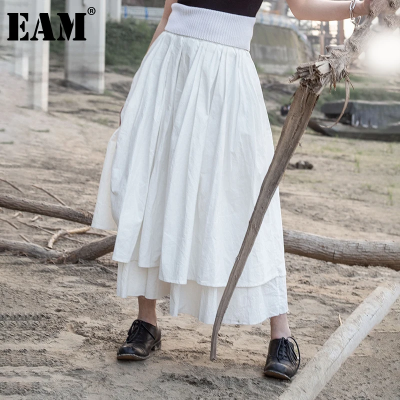 [EAM] белая Асимметричная Двухслойная юбка с высокой эластичной талией, женская модная юбка, новинка, весна-осень 2021, JR384