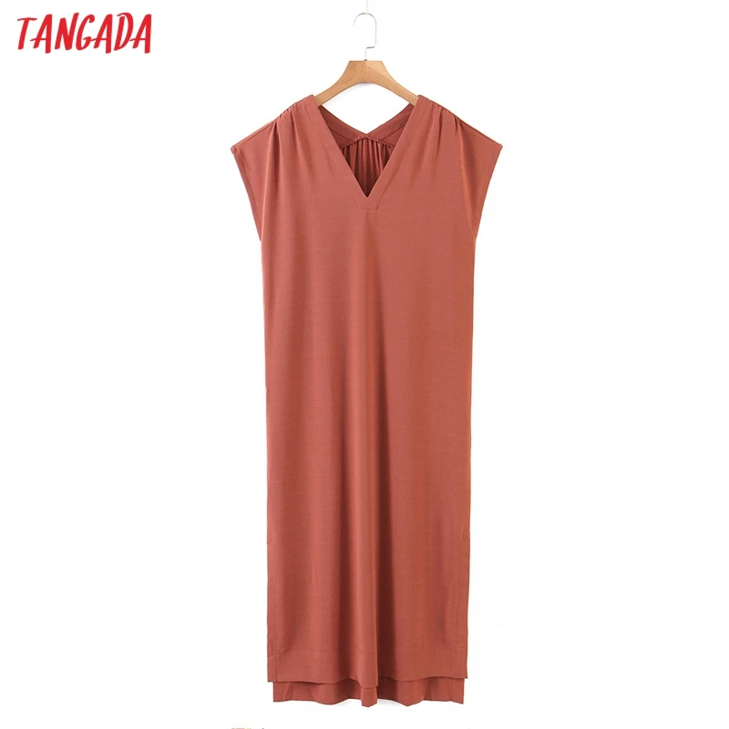 Tangada 2021 летние Для женщин негабаритных Свободное длинное платье с v-образным вырезом женское платье макси Vestidos 8H69