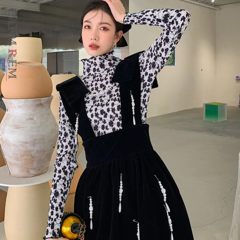 LANMREM Винтажная Футболка Повседневная элегантная женская рубашка с длинным рукавом и цветочным принтом 2021 Весна Лето Женский модный топ 2D1044