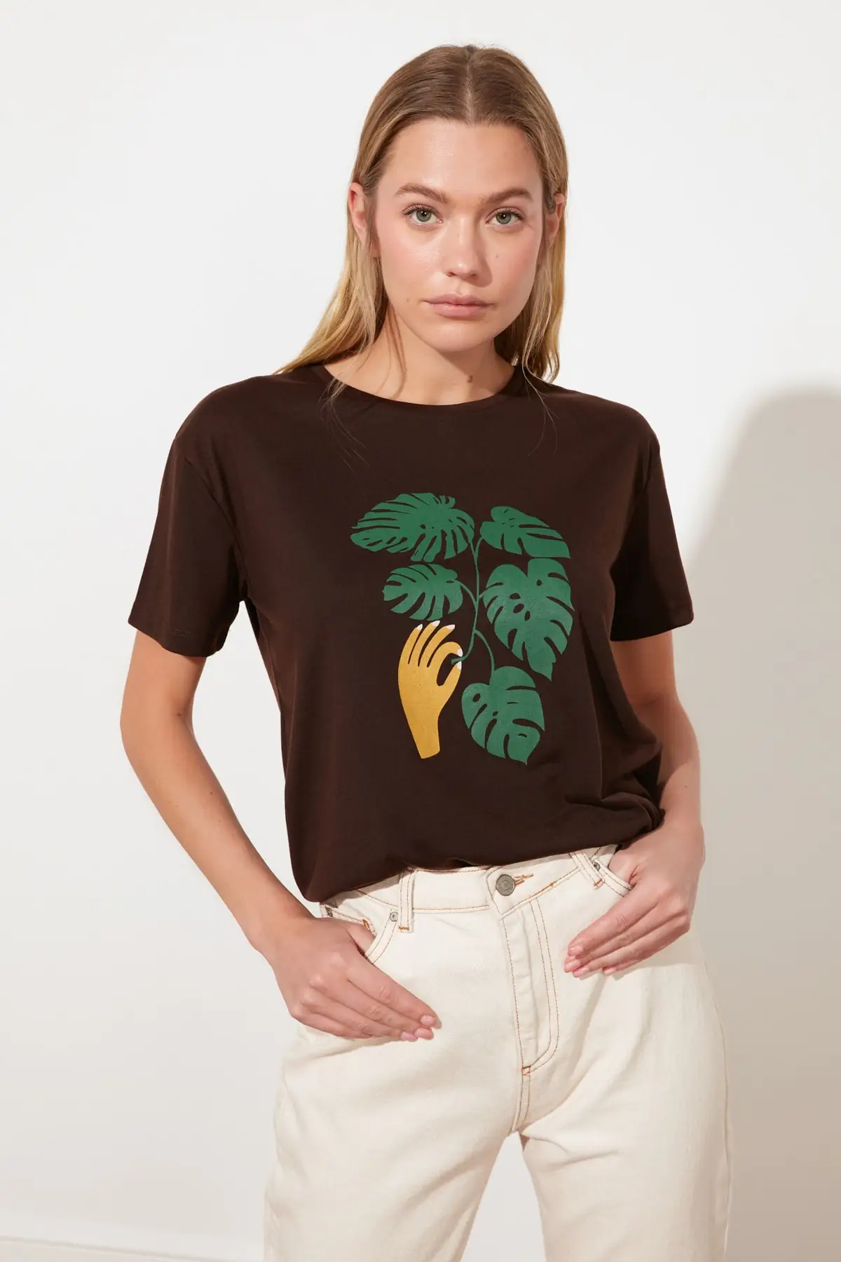 Укороченная трикотажная футболка с принтом «тренд» TWOSS21TS2346