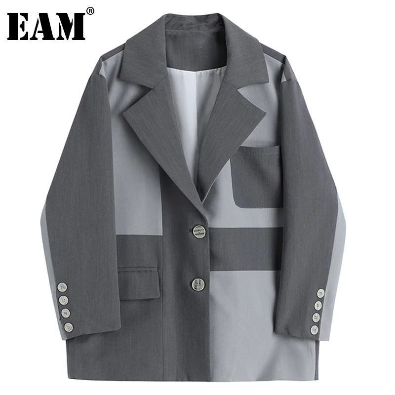 [EAM] Женский контрастный Блейзер большого размера, новая свободная куртка с длинным рукавом, модная демисезонная 2021 1DD5880