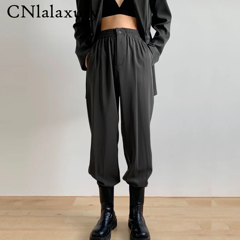 CNlalaxury Новая женская искусственная кожа шаровары узкие брюки 2021; Сезон весна-осень; Высокая талия Повседневный стиль брюк Офисные женские туфли женские брюки Femme