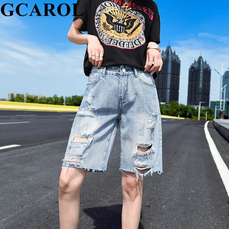 Женские джинсовые широкие брюки-Капри GCAROL с высокой талией, рваные Свободные повседневные укороченные брюки размера плюс 25-32