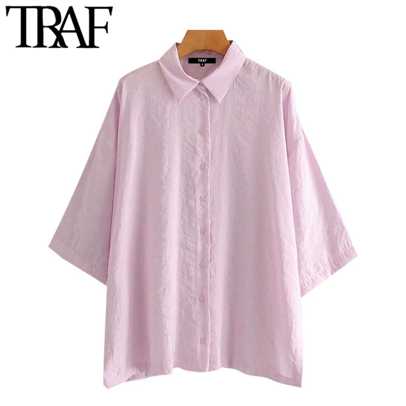 Женские винтажные блузки на пуговицах TRAF, с рукавом три четверти и боковыми отверстиями, большие размеры