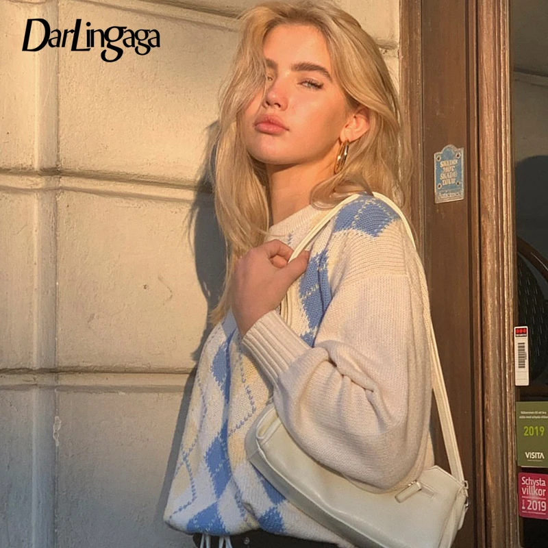 Женский вязаный свитер в клетку Darlingaga, винтажный пуловер в консервативном стиле, Осень-зима 2019