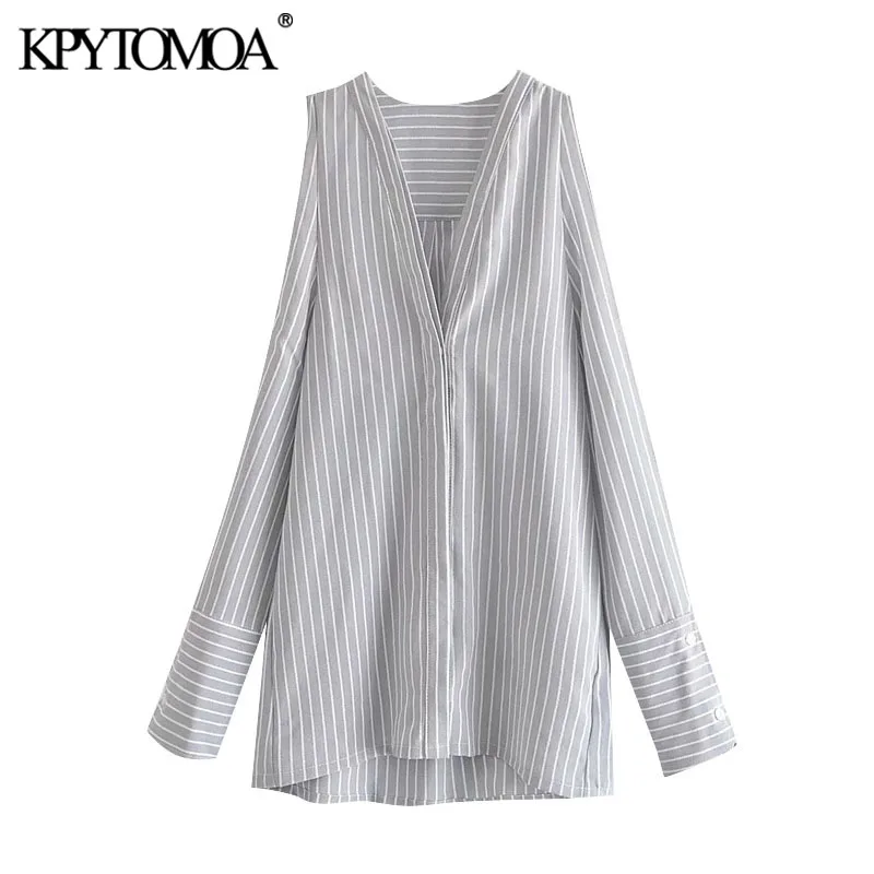 KPYTOMOA женские 2021 сексуальные Модные Полосатые блузки с вырезами винтажные женские рубашки с V-образным вырезом и длинным рукавом Блузы шикарные топы