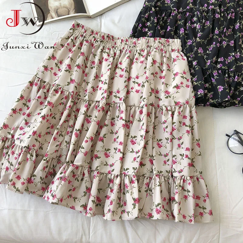 Женская летняя мини юбка, модная Корейская шифоновая юбка с цветочным принтом и высокой талией, Повседневная пляжная юбка Faldas Saias
