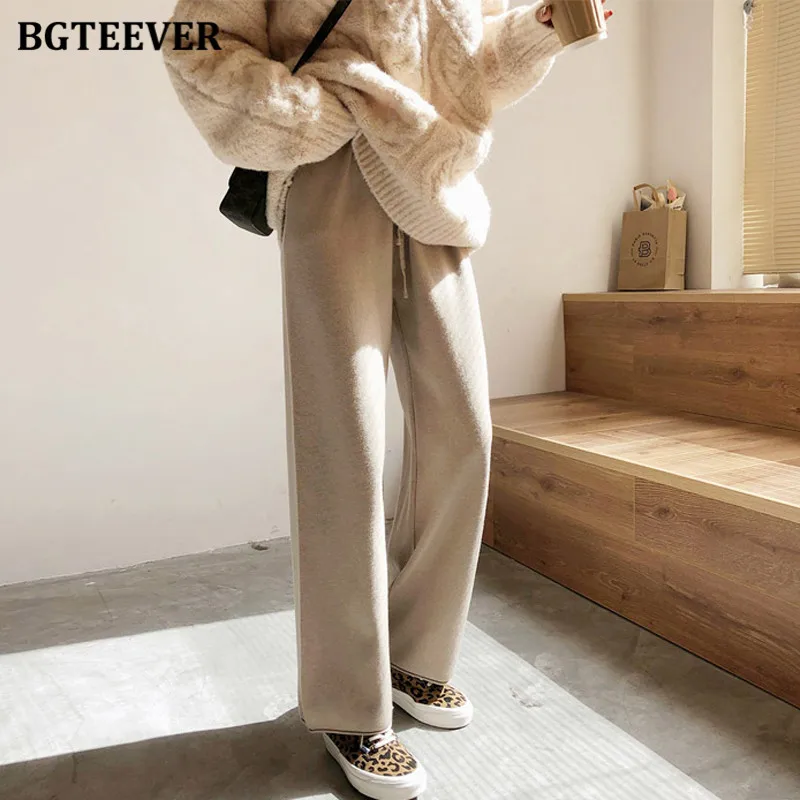 Осенне-зимние теплые прямые трикотажные брюки BGTEEVER с эластичной талией на шнуровке, женские повседневные свободные свитеры, брюки, 2020