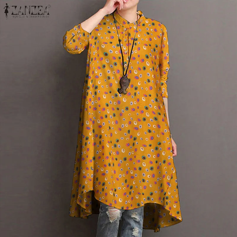 2021 Офисные женские туфли работы шикарная рубашка ZANZEA размера плюс, женские блузы свободного покроя длинными расклешенными рукавами Blusas сплошной цвет Асимметричный туника Blusas 5XL