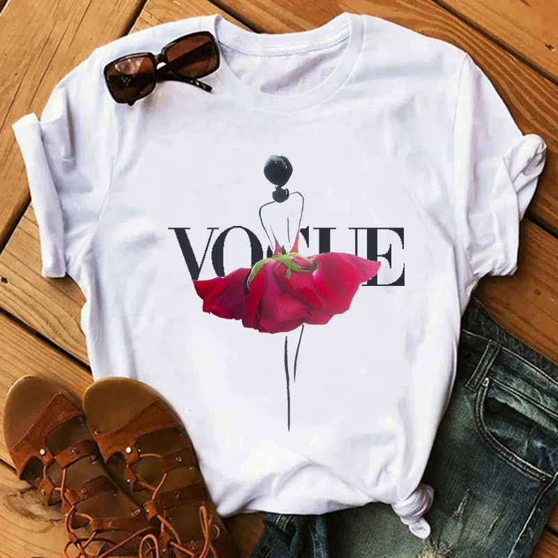 Maycaur Новая модная футболка, женская мода, балетная танцевальная футболка с графическим принтом, повседневные топы с цветами, женские футбол...