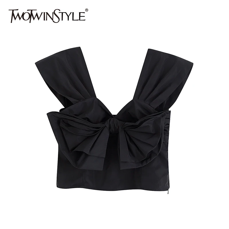 Twotwin2 стильные сексуальные черные Лоскутные Жилеты с бантом для женщин с квадратным воротником без рукавов короткие тонкие топы на бретельках Женские 2021 Летний стиль