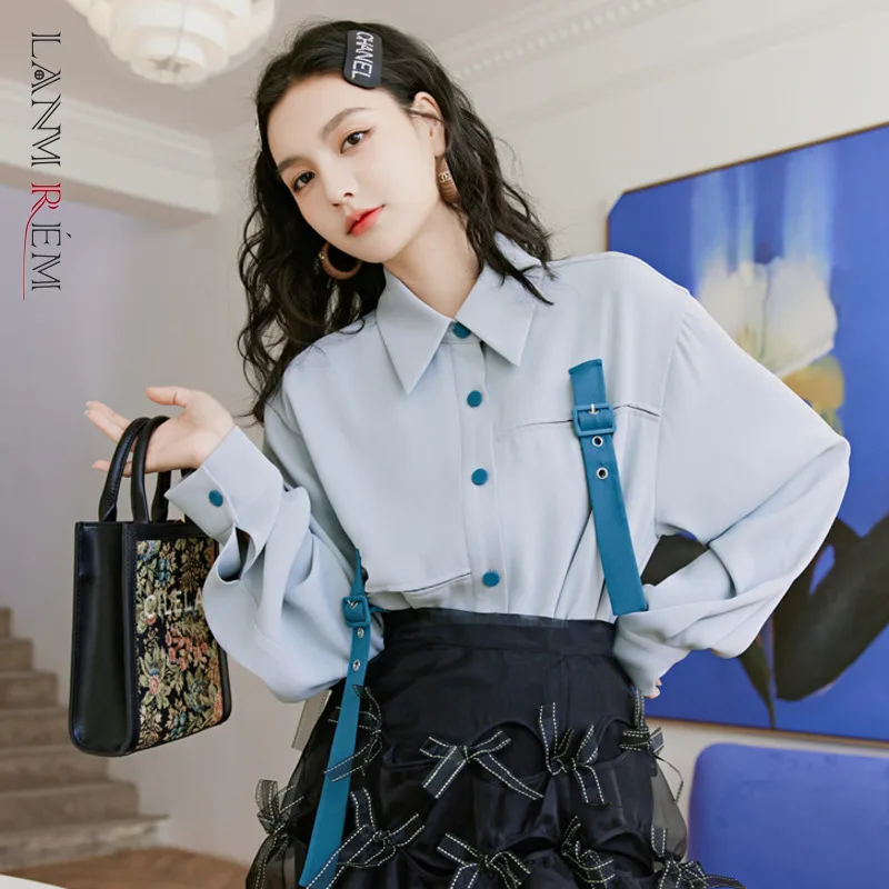 LANMREM Асимметричная рубашка Женская 2021 Весна и лето свободного размера плюс зеленые рубашки офисный женский элегантный топ 2D1458