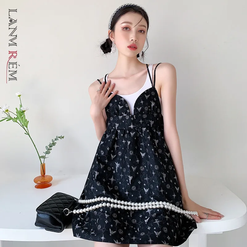 LANMREM женское новое платье жаккардовое ТРАПЕЦИЕВИДНОЕ ПЛАТЬЕ С Высокой Талией темперамент свободный крой Мода Лето 2021 2P203