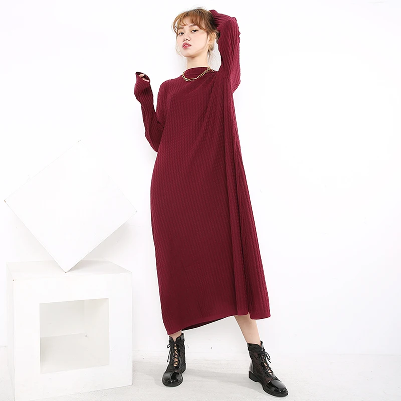 Женское вязаное длинное платье EAM, зеленое Свободное платье с высоким воротником и длинным рукавом, Осень-зима 2020, 1 db51206