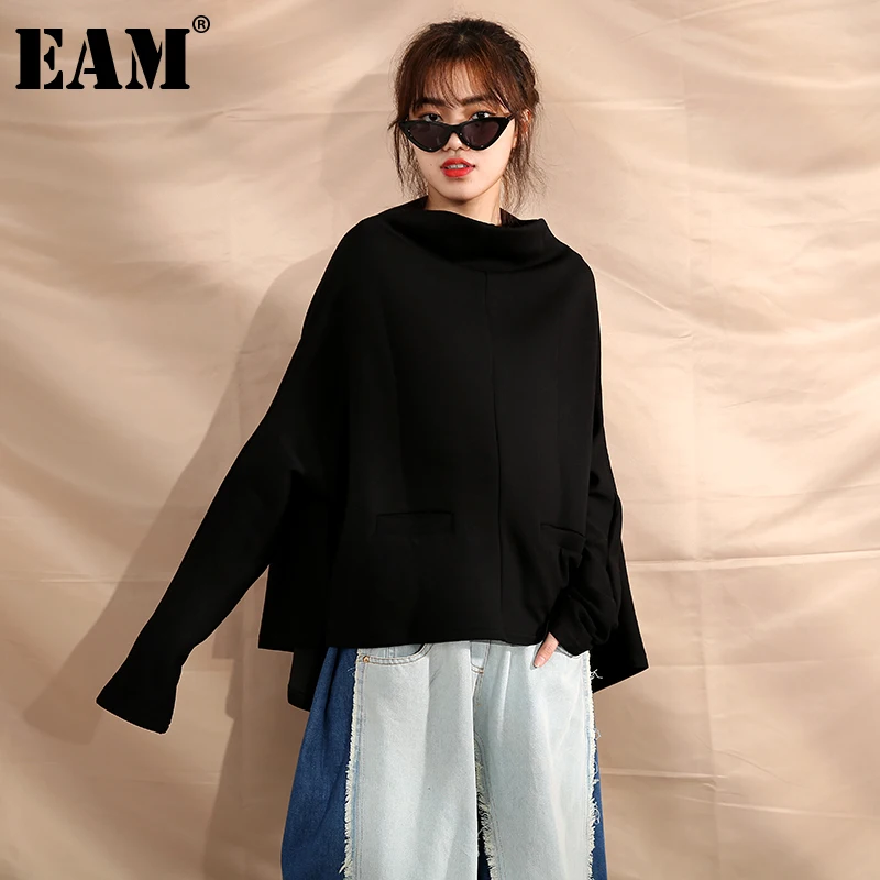 [EAM] Свободная черная Асимметричная толстовка, новая водолазка с длинным рукавом, Женская мода большого размера, весна-осень 2020, JI94901