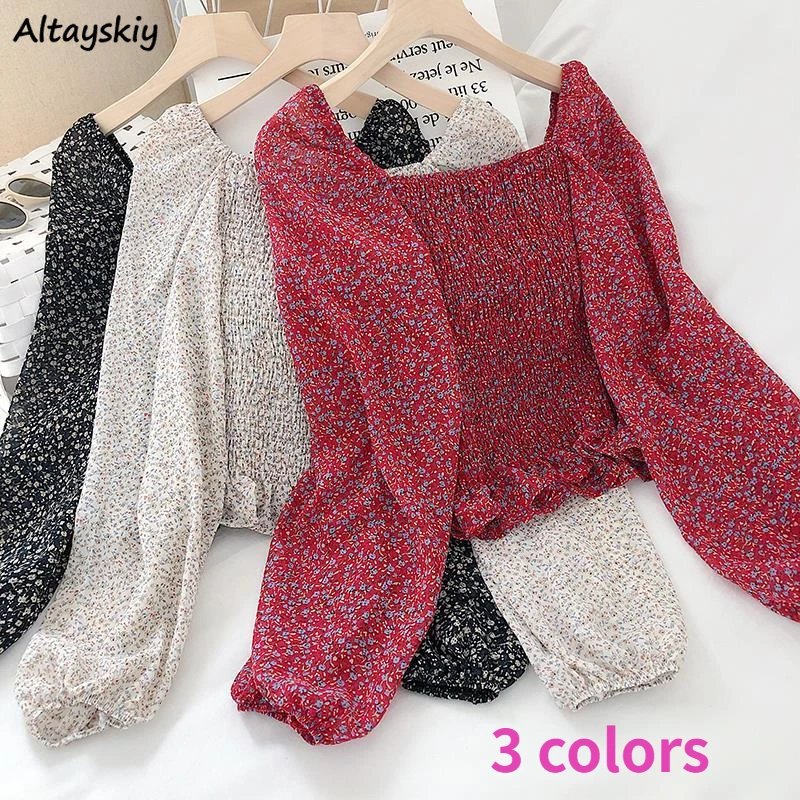 Блузки для женщин, со складками, с рукавами-фонариками на ремешках с украшением в виде цветов Elelgant в винтажном стиле; 3 Цвета высокого качества из мягкого шифона кепки, кепки в стиле шик коллекция весенней женской обуви