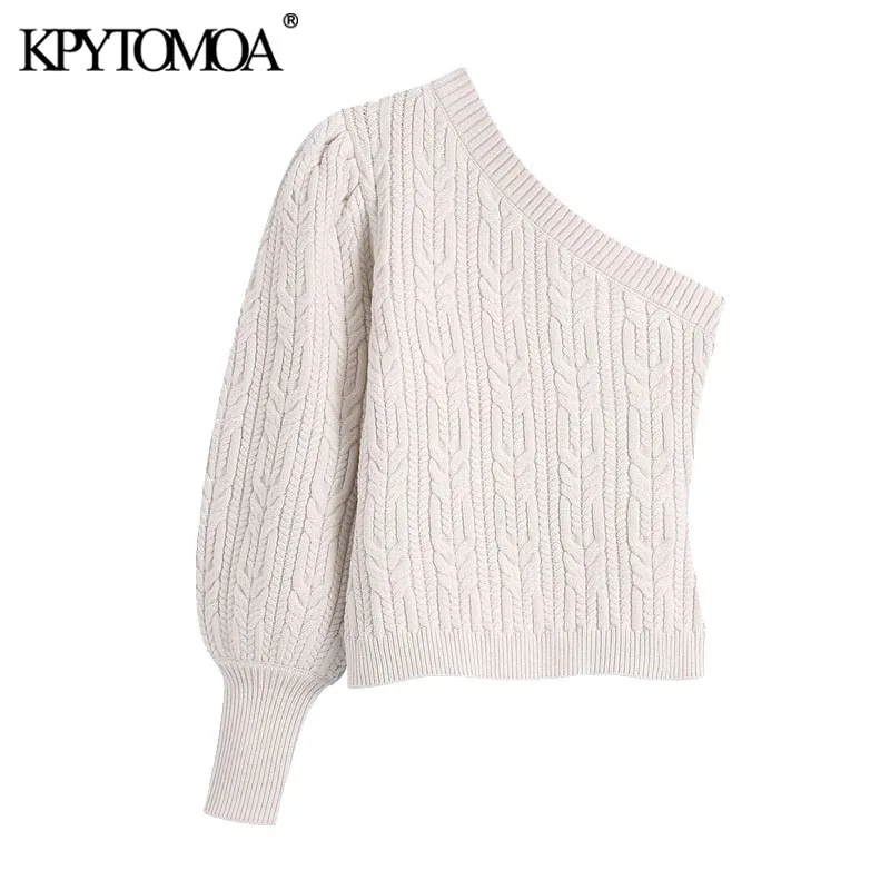 KPYTOMOA женский 2021 модный Асимметричный вязаный свитер винтажный с круглым вырезом рукавами-фонариками женские пуловеры шикарные топы