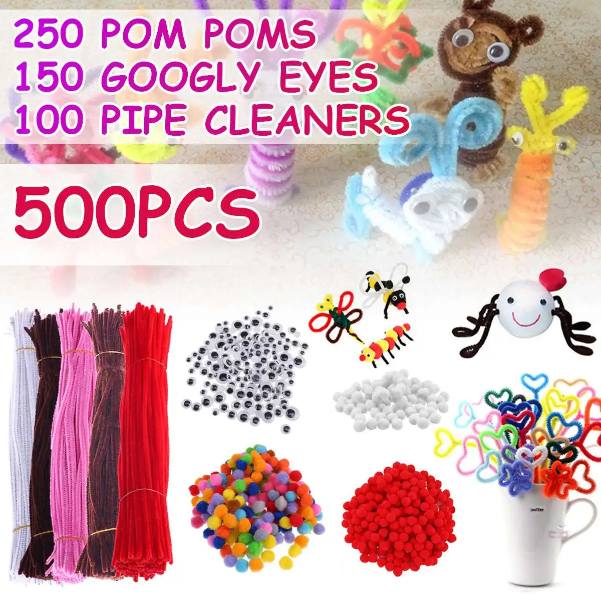 100 шт., плюшевые палочки + 250 шт. цветных помпонов + 150 шт., детские «глазки»