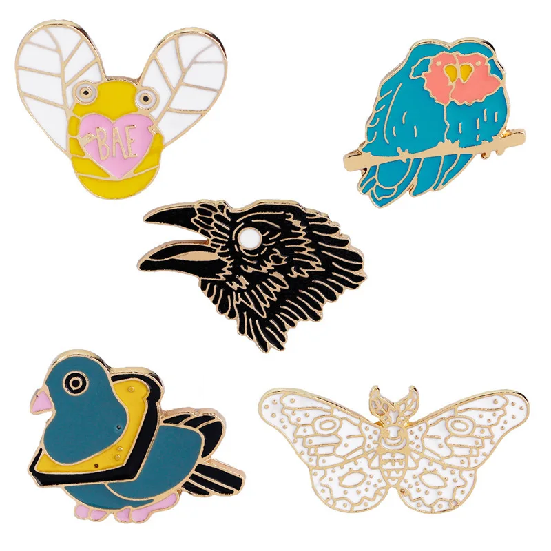 Коллекция «Лесной эльф» эмалированные булавки, Мультяшные броши в виде животных, Бабочка, ворона, пчела, птицы, брошь, значки, подарок для ма...