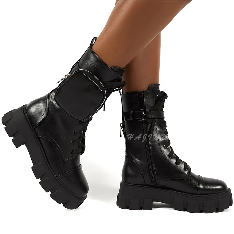 2020 Модные женские ботинки, мотоциклетная обувь на платформе, женские высокие ботинки на каблуке, Ботинки Martin, кожаные панковские ботинки с р...