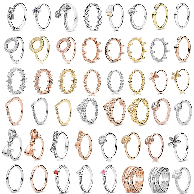 Серебряное кольцо в форме короны в форме сердца для женщин, европейские оригинальные кольца на палец, свадебные ювелирные изделия, 50 стилей, Прямая поставка