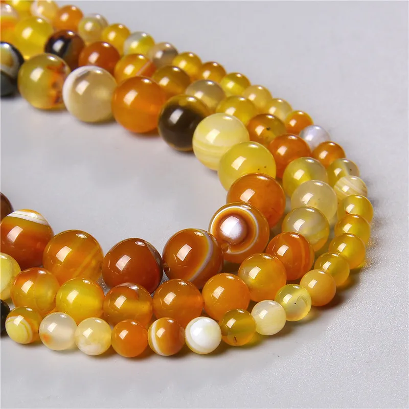 Желтый оранжевый натуральный агат бусины Spacer свободного кроя в полоску Агат Бусины на возраст 6, 8, 10 мм камень Шарм аксессуары для браслет ювелирных изделий